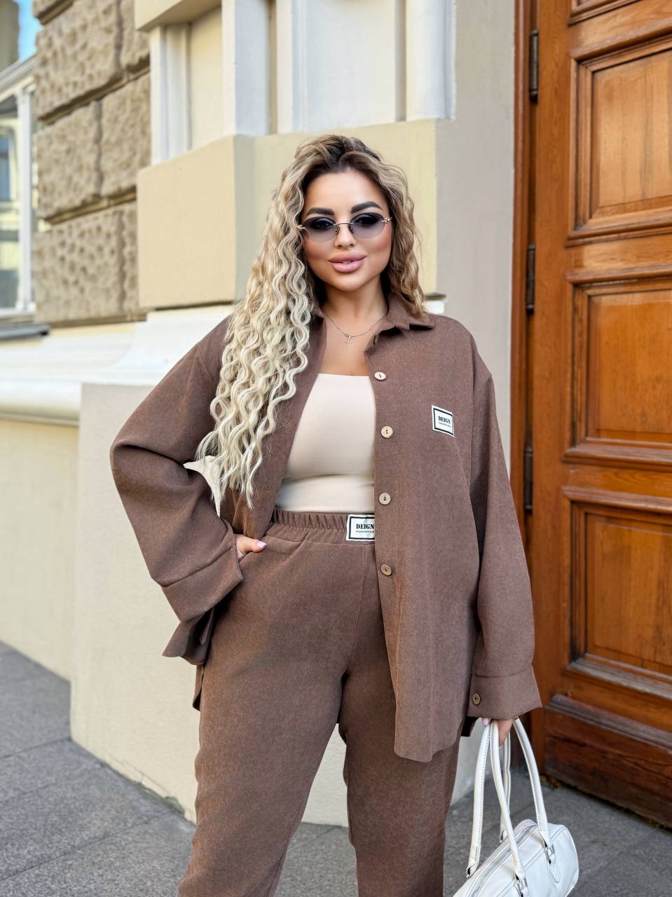 Жіночий костюм з сорочкою кольору мокко 00530