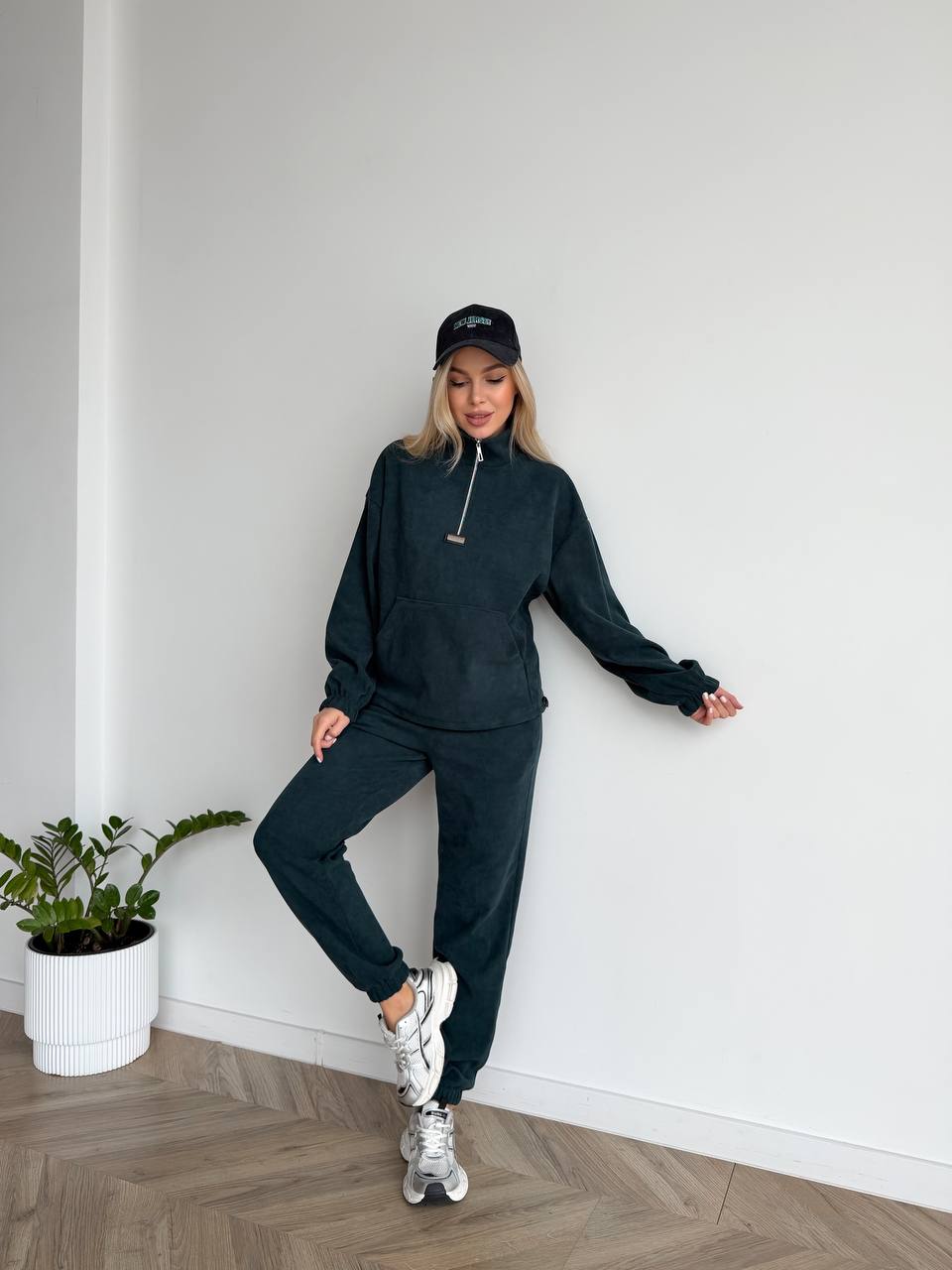 Костюм чудово підходить для створення стильних повсякденних образів та легко поєднується зі спортивним або casual взуттям.
