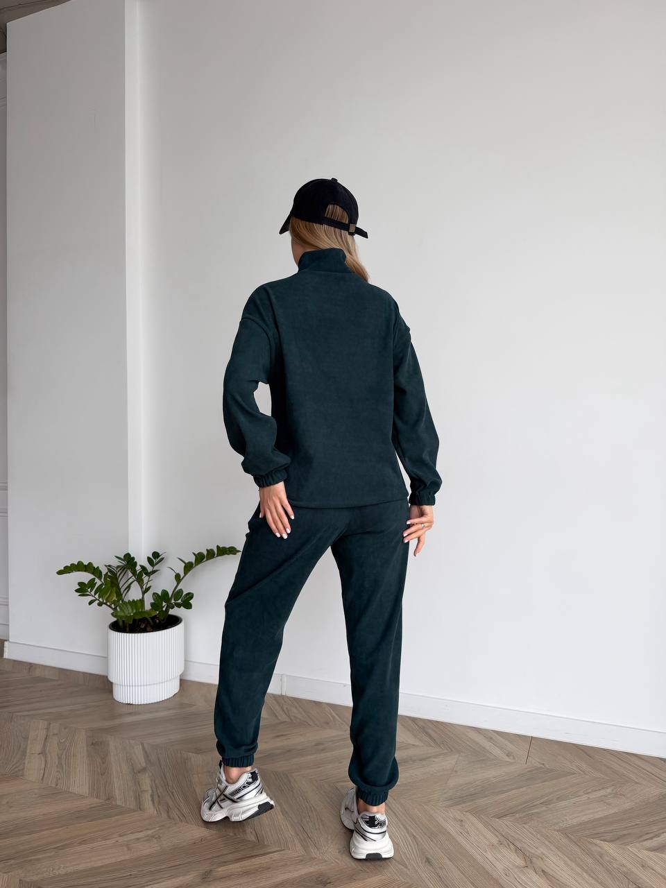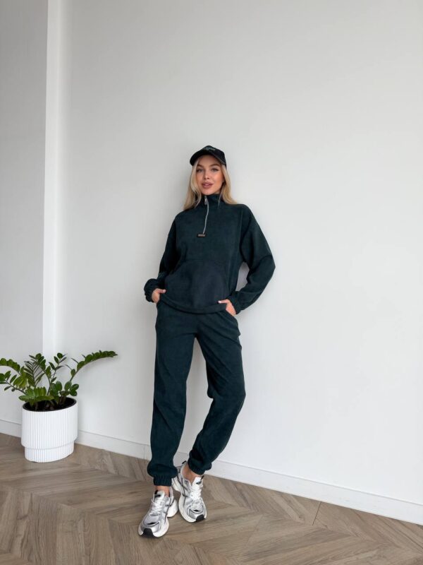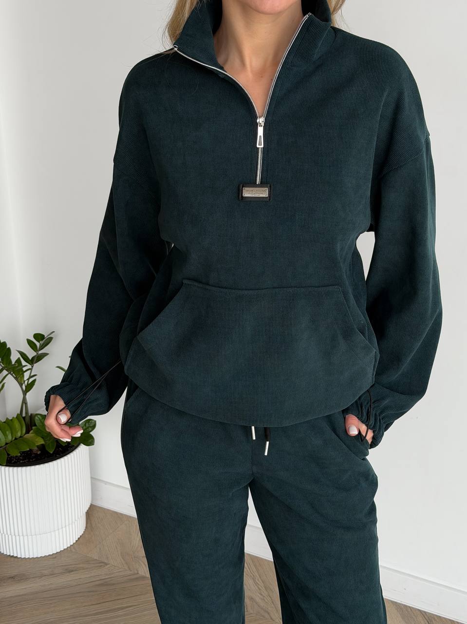 Жіночий костюм з вельвету смарагдового кольору –  ідеально підходить для щоденного носіння, прогулянок або відпочинку. Модель виконана з якісної тканини трикотажний вільвет — м’якої, приємної до тіла та практичної у носінні. Матеріал добре тримає форму, виглядає стильно та забезпечує комфорт протягом усього дня.