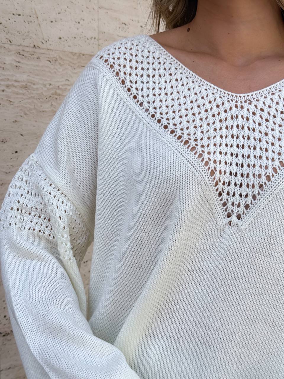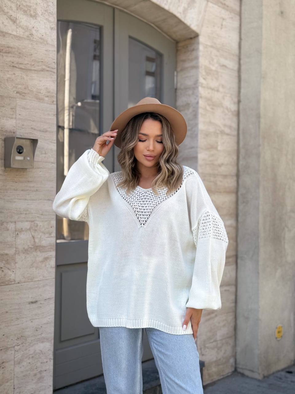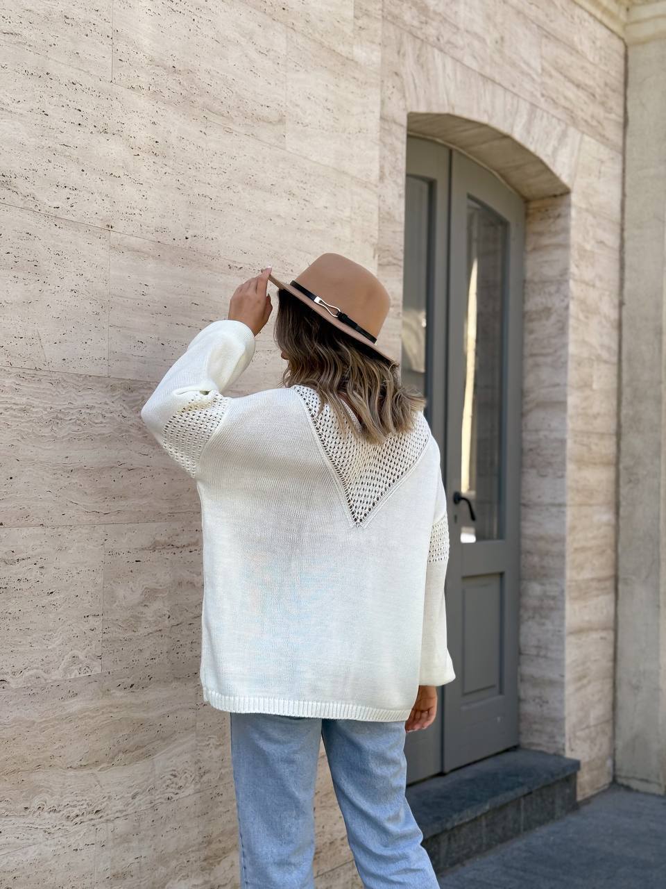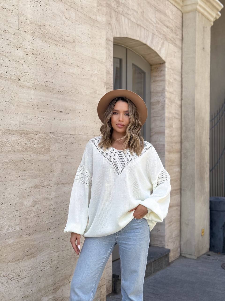 Жіночий легкий светр з візерунком молочного кольору 00557