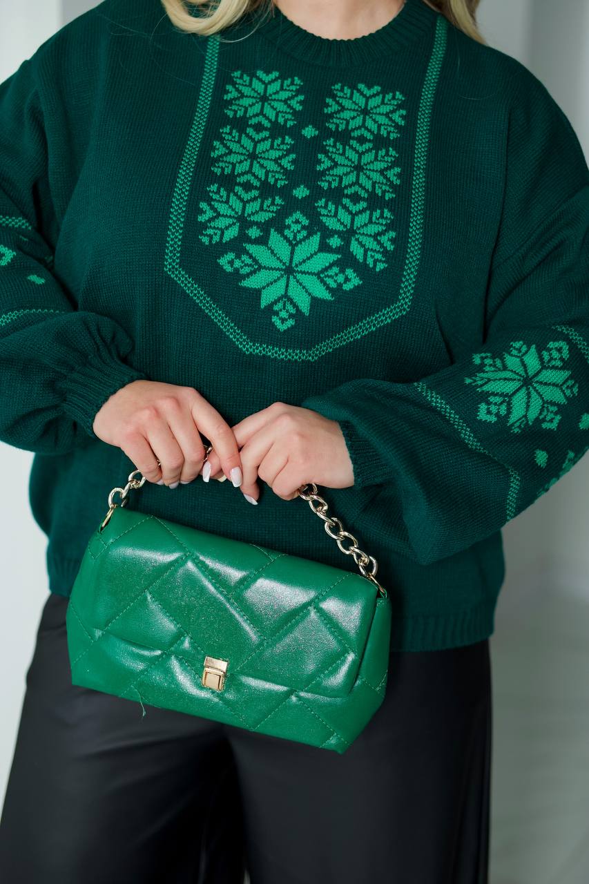 Жіночий светр з етнічним візерунком смарагдового кольору 00586