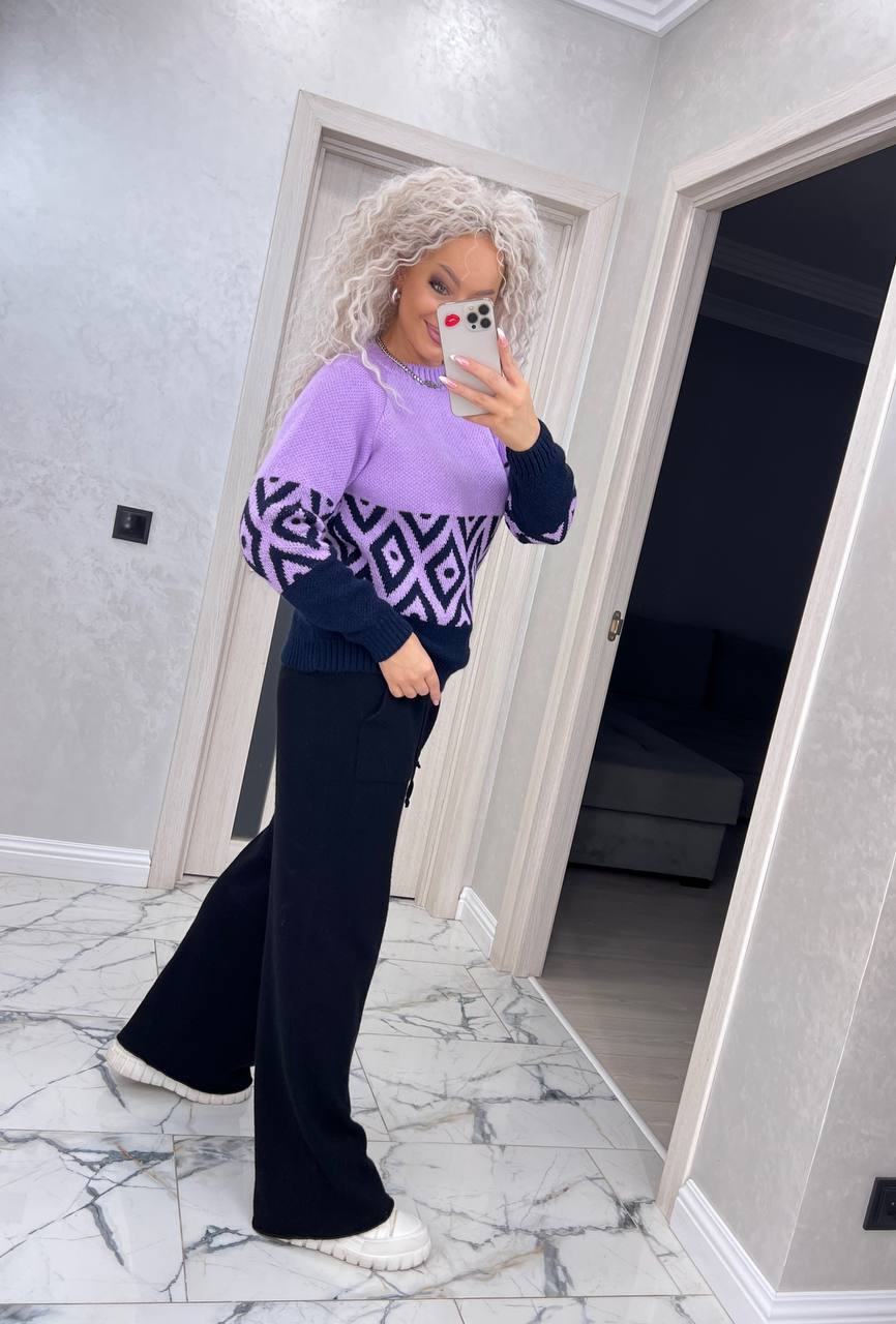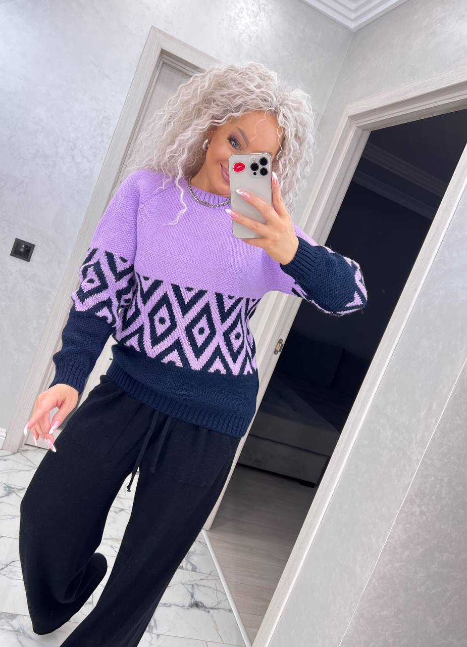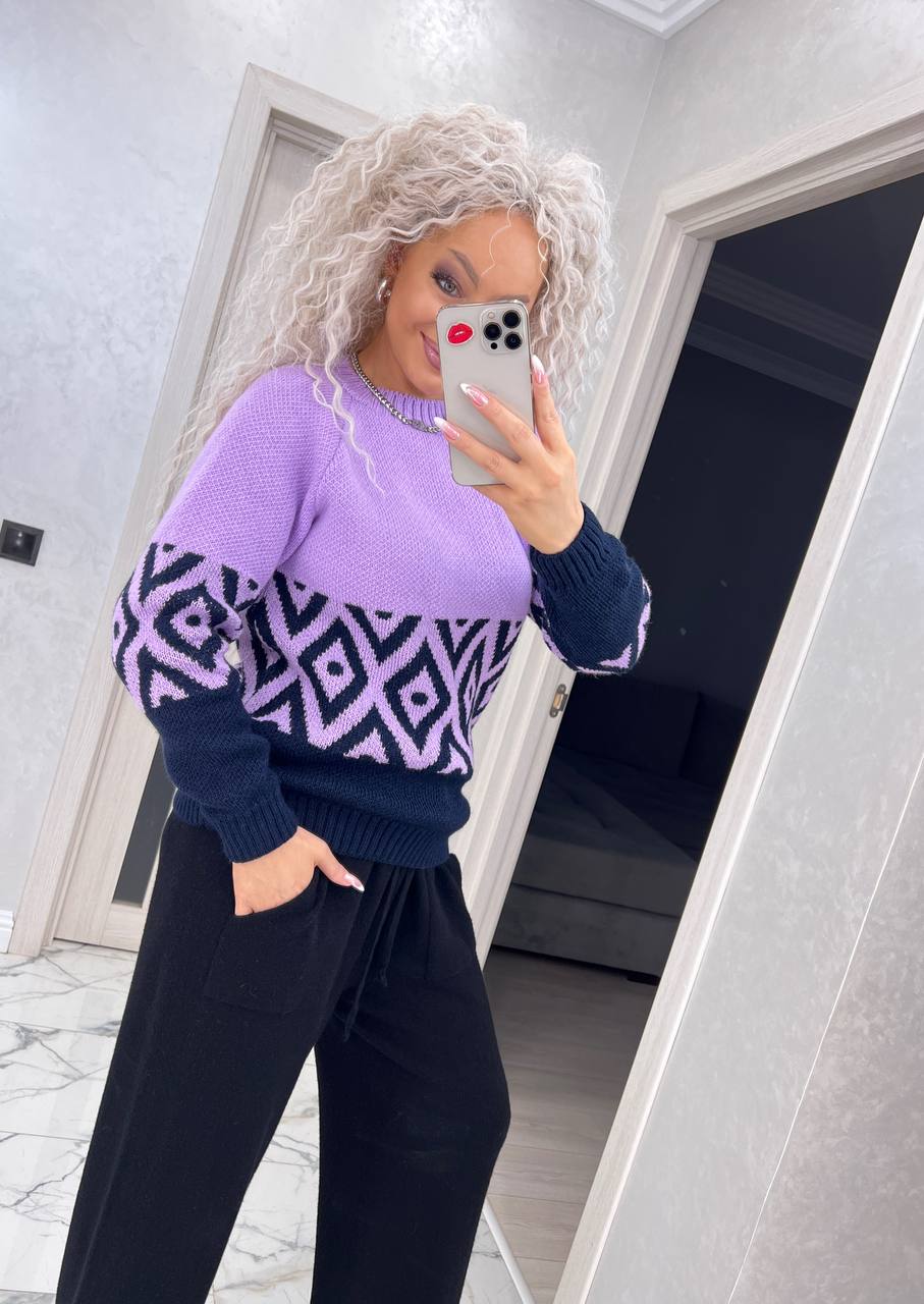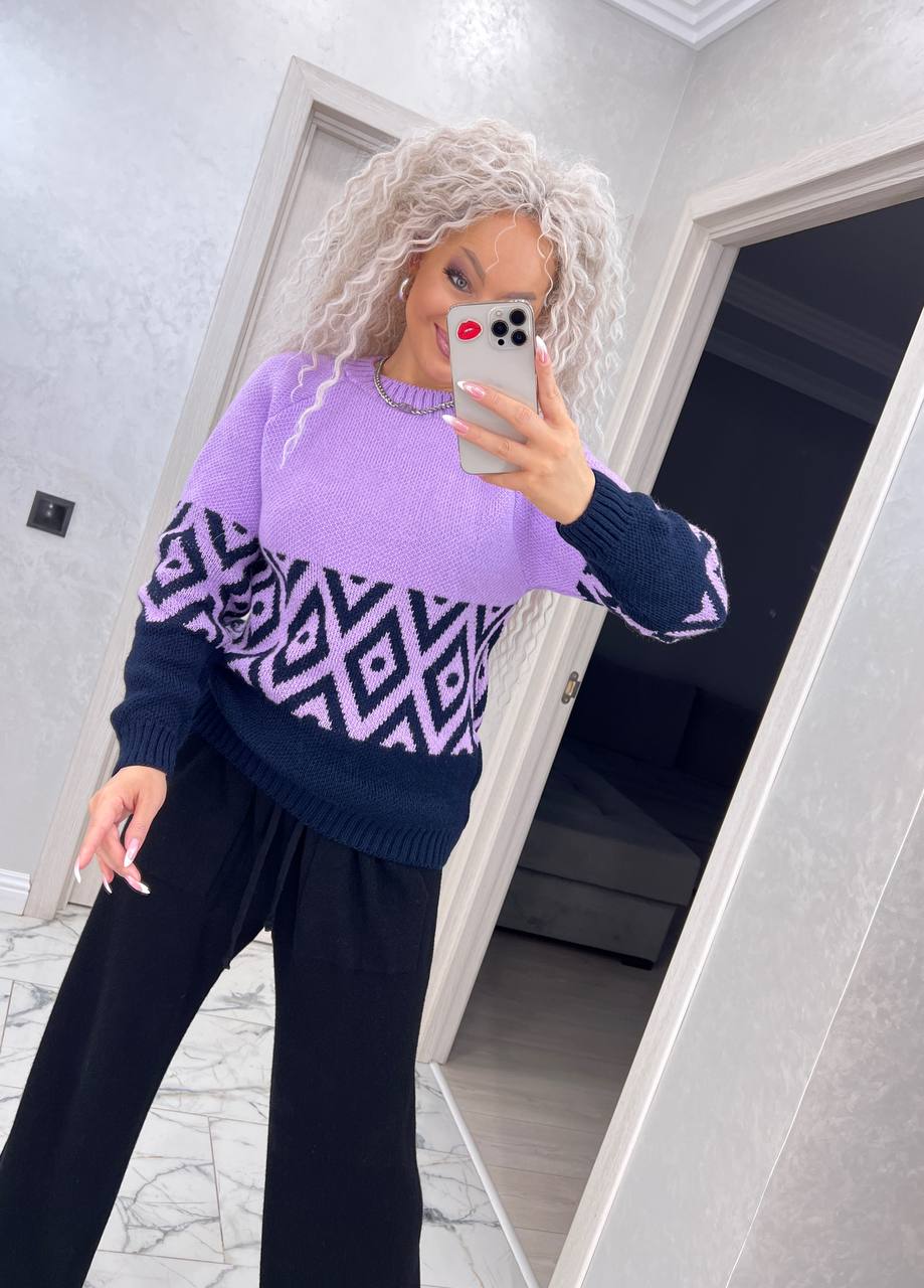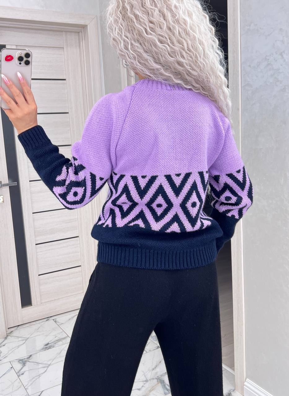 Жіночий светр з візерунком бузково – синього кольору 00484