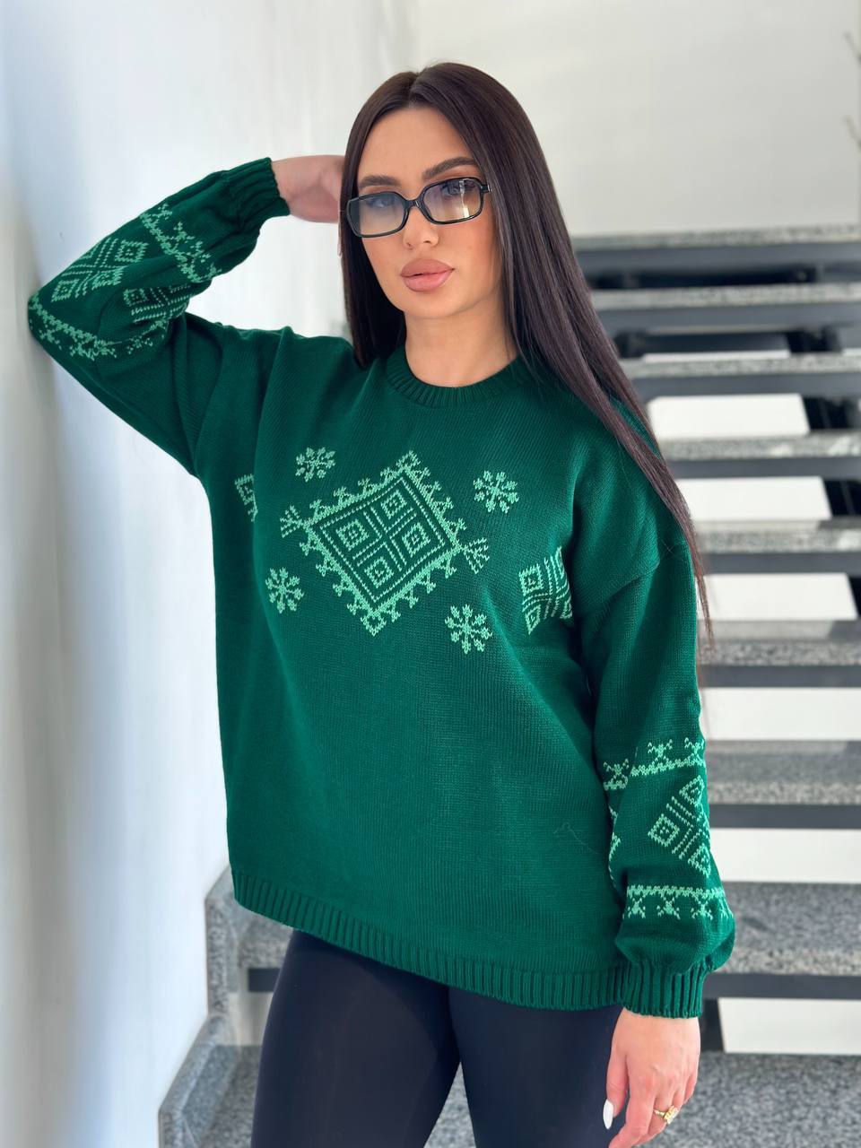 Жіночий светрик з етнічним візерунком смарагдового кольору 00468