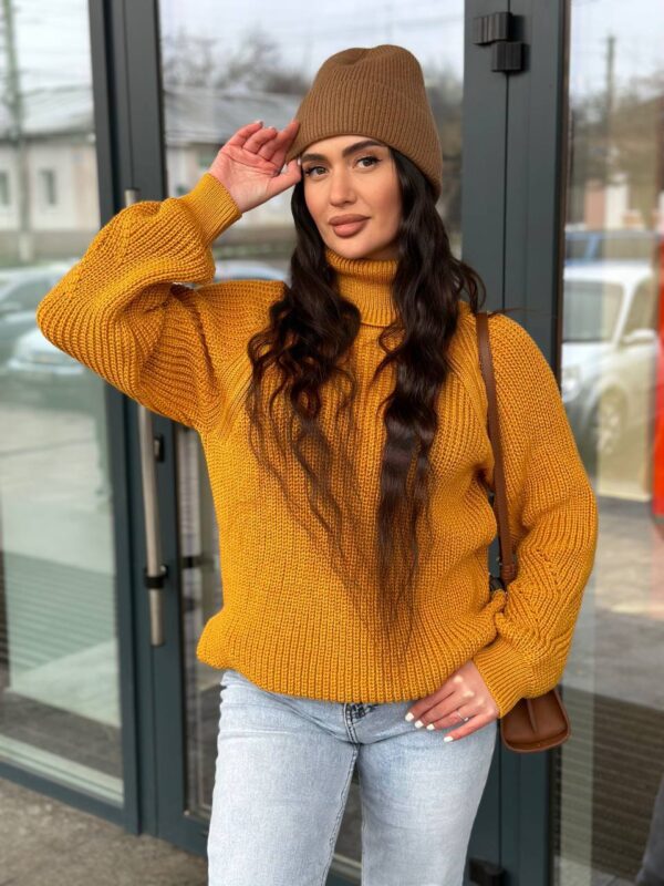 Додати до відстеження цінЖіночий светрик з горловиною гірчичного кольору — тепла, м’яка та комфортна модель для повсякденного носіння. Лаконічний дизайн робить його універсальною базою гардероба, а напіввовняна пряжа добре зберігає тепло та приємна до тіла. Светрик не колеться, гарно тримає форму та забезпечує комфорт протягом усього дня. Ідеально підходить для прохолодної погоди та стане практичним вибором для осінньо-зимового сезону.