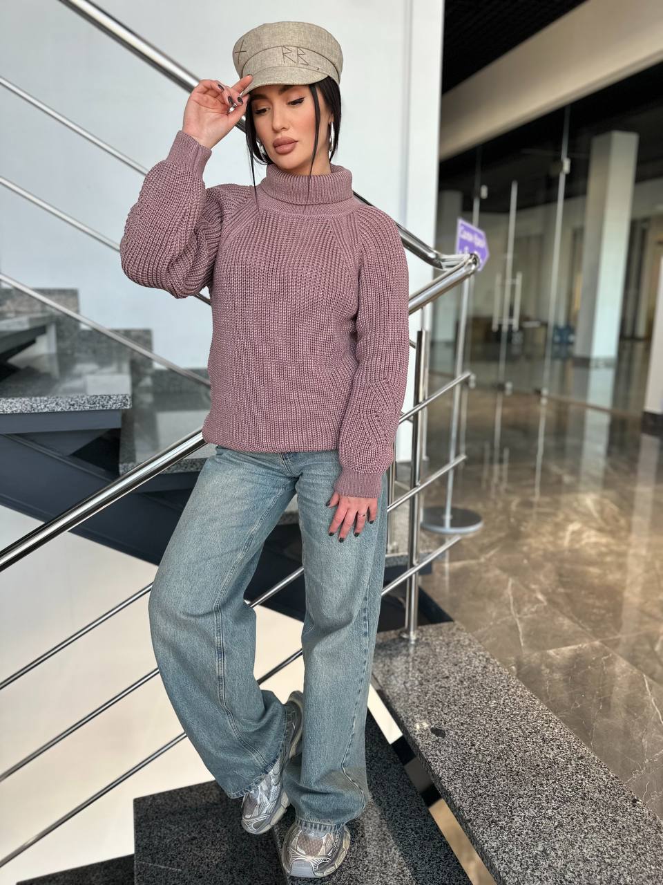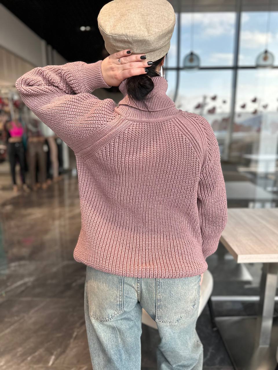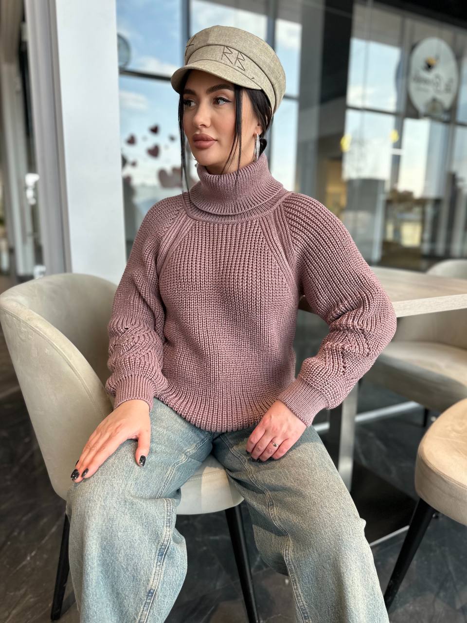 Жіночий светрик з горловиною кольору темна пудра 00481