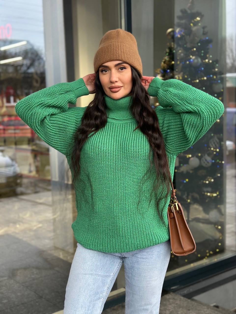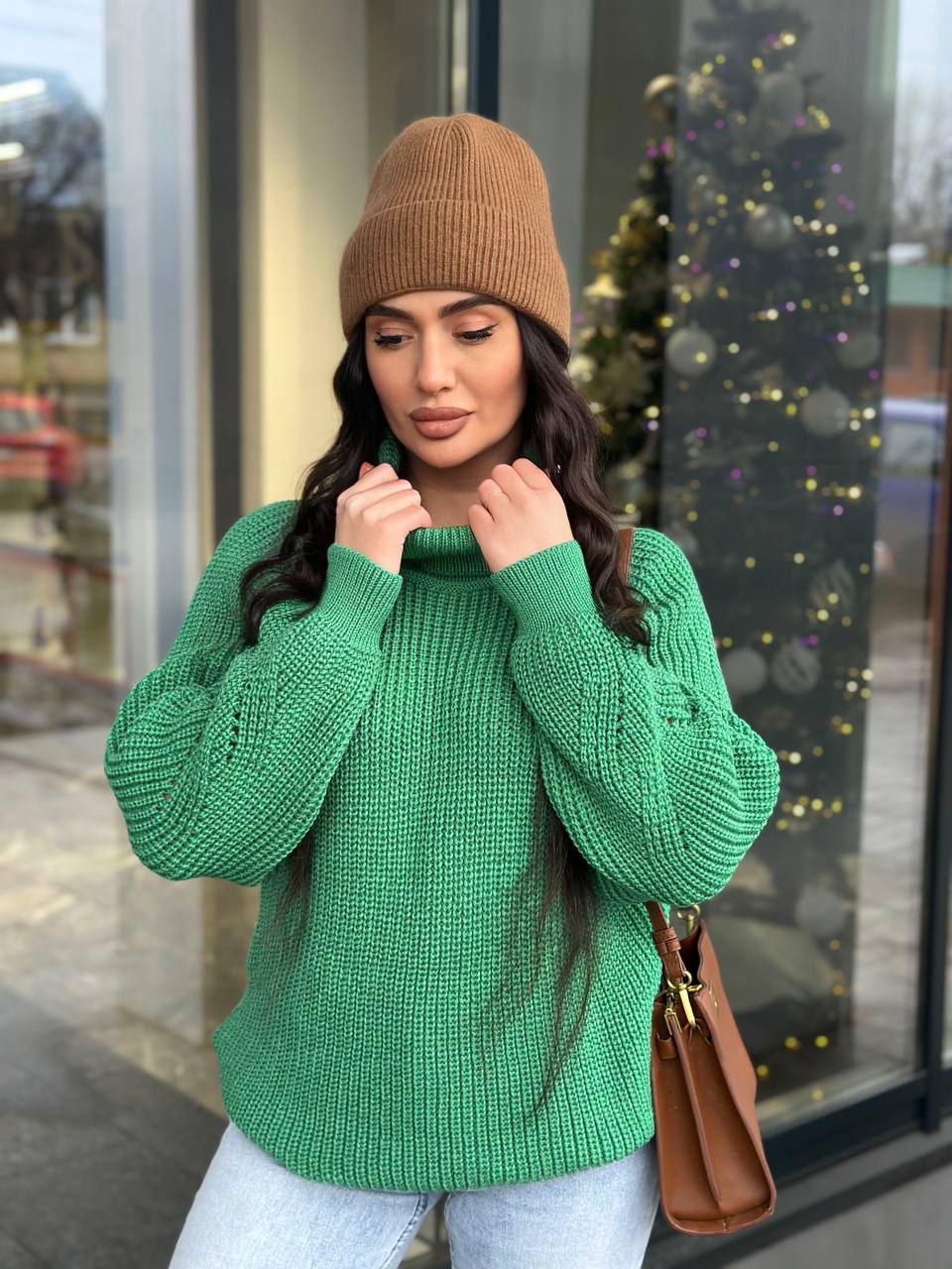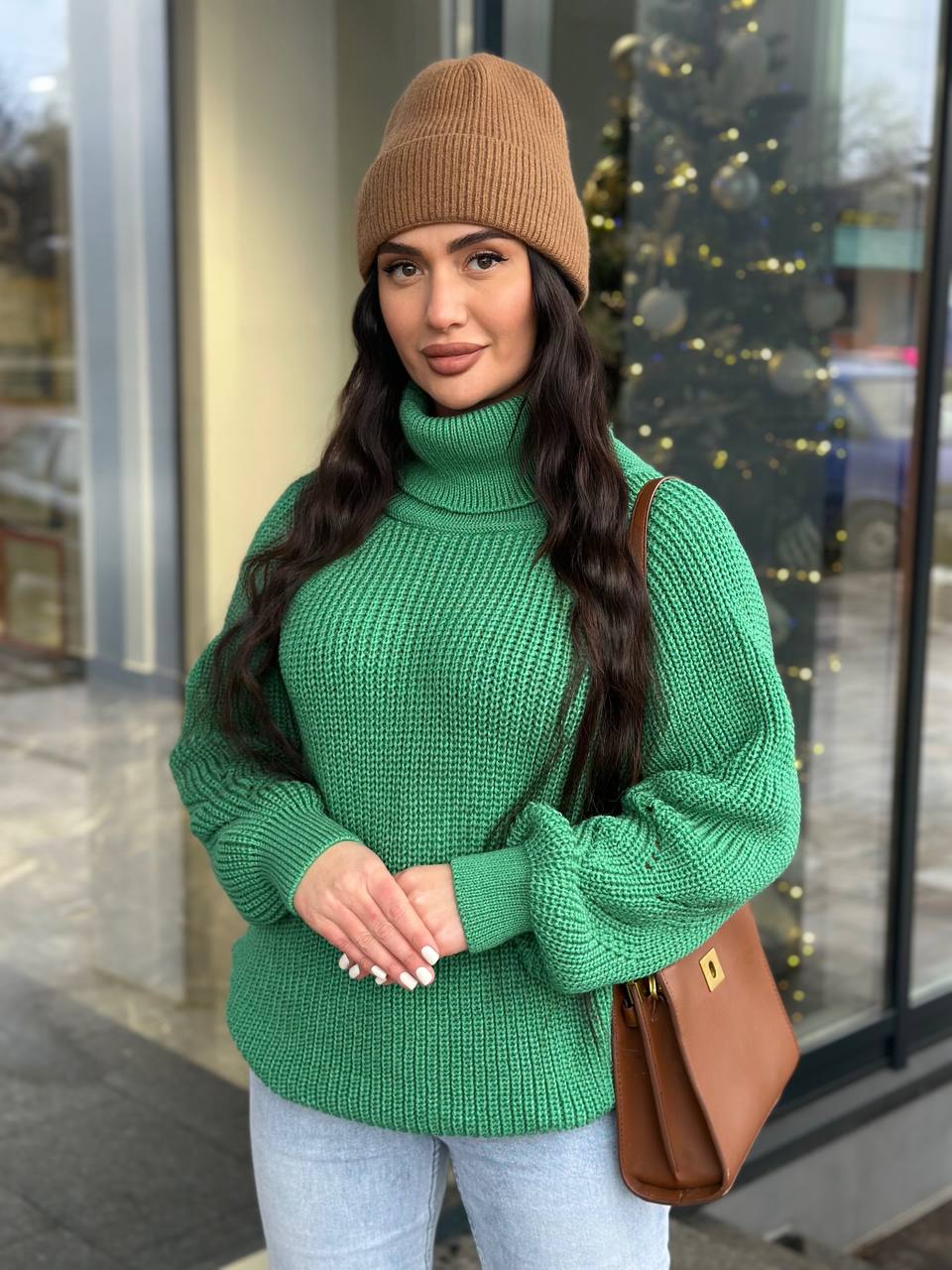 Жіночий светрик з горловиною мʼятного кольору — тепла, м’яка та комфортна модель для повсякденного носіння. Лаконічний дизайн робить його універсальною базою гардероба, а напіввовняна пряжа добре зберігає тепло та приємна до тіла. Светрик не колеться, гарно тримає форму та забезпечує комфорт протягом усього дня. Ідеально підходить для прохолодної погоди та стане практичним вибором для осінньо-зимового сезону.