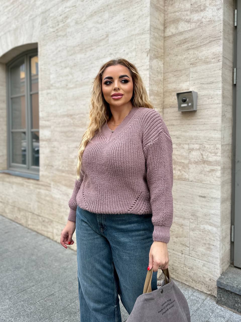 Жіночий трикотажний светр кольору темна пудра 00569