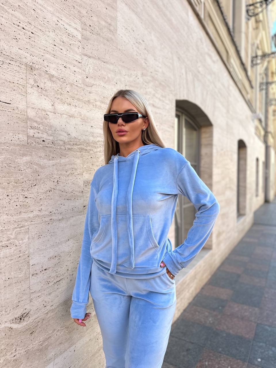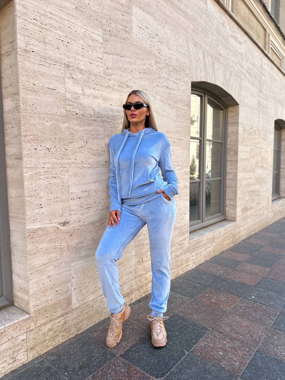Жіночій спортивний велюровий костюм блакитного кольору 00506