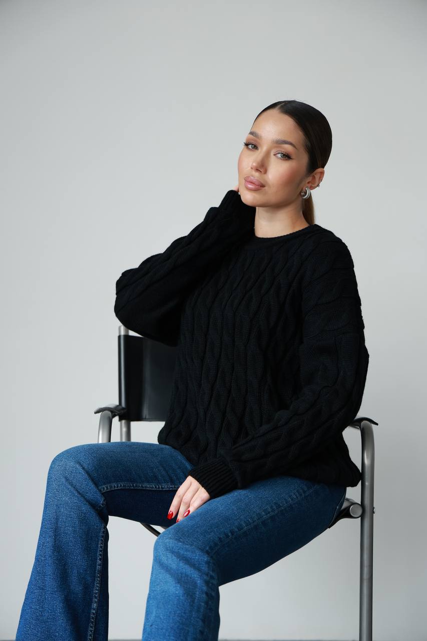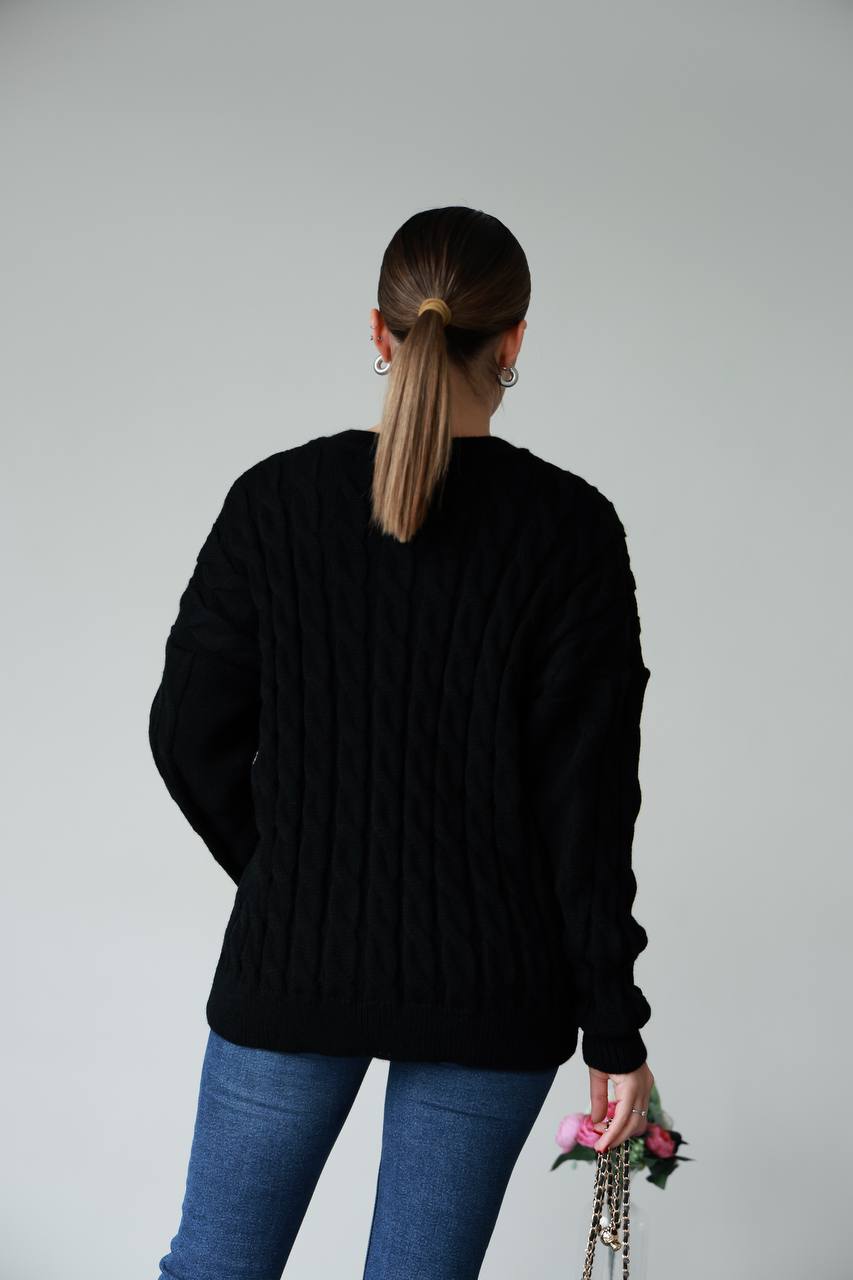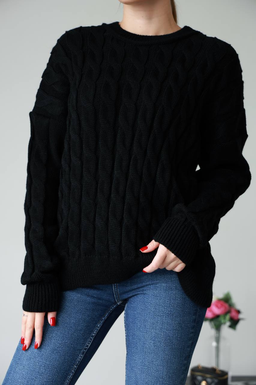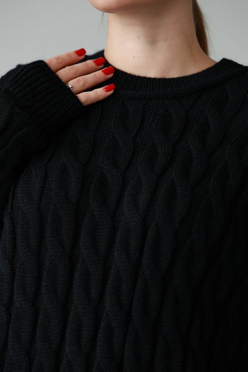 Жіночий в’язаний однотонний светр чорного кольору 00594