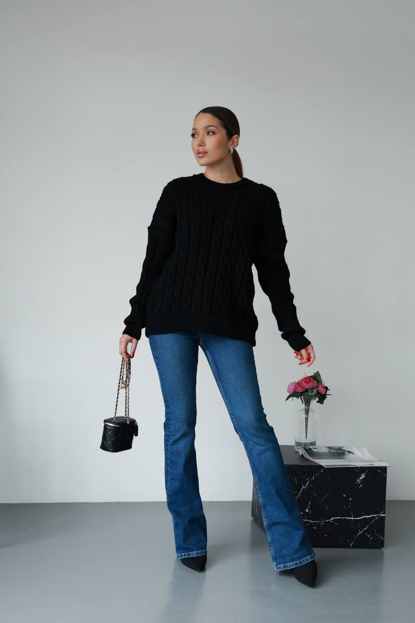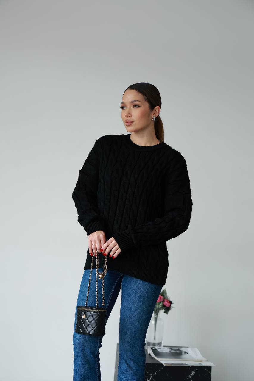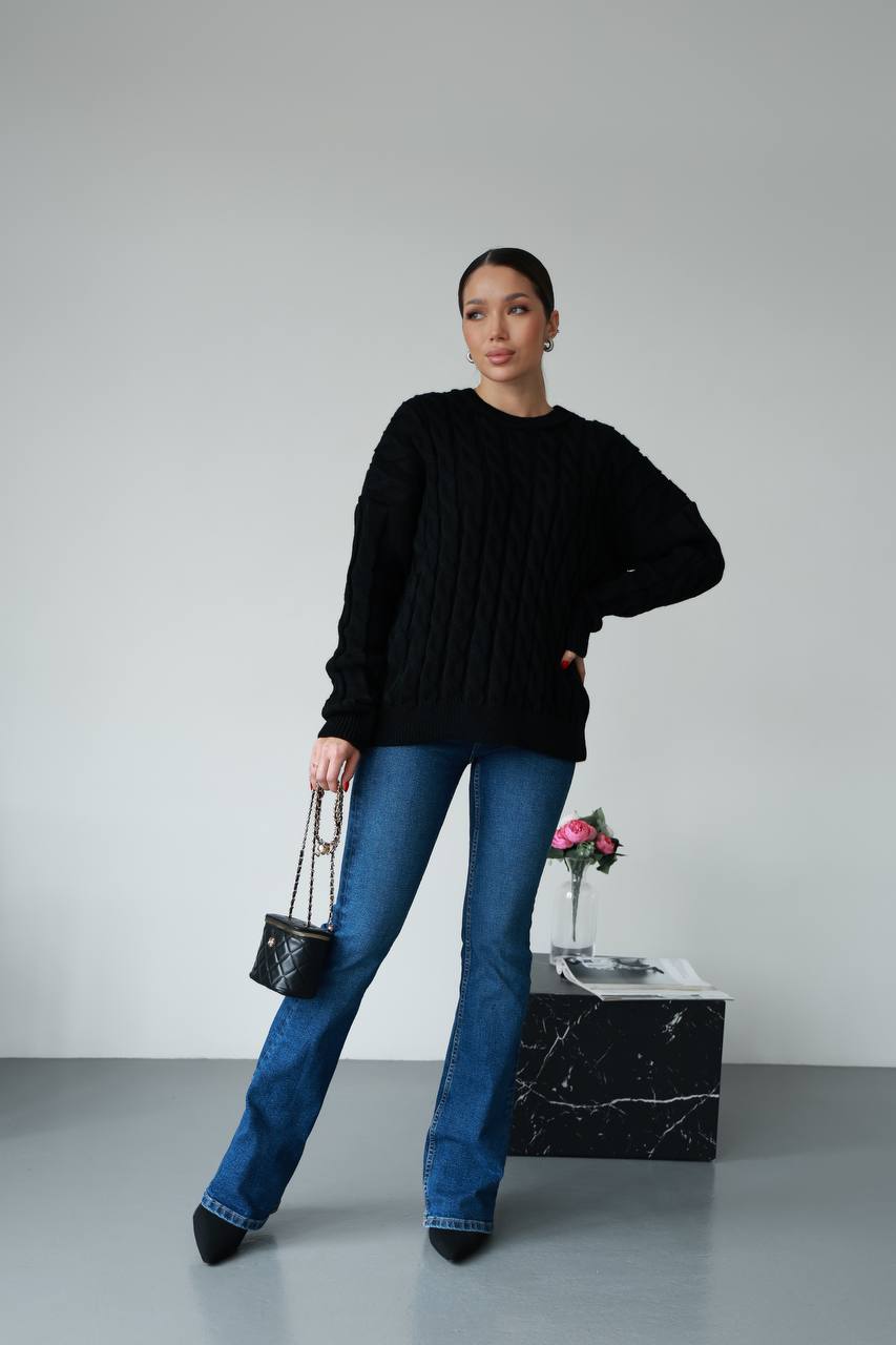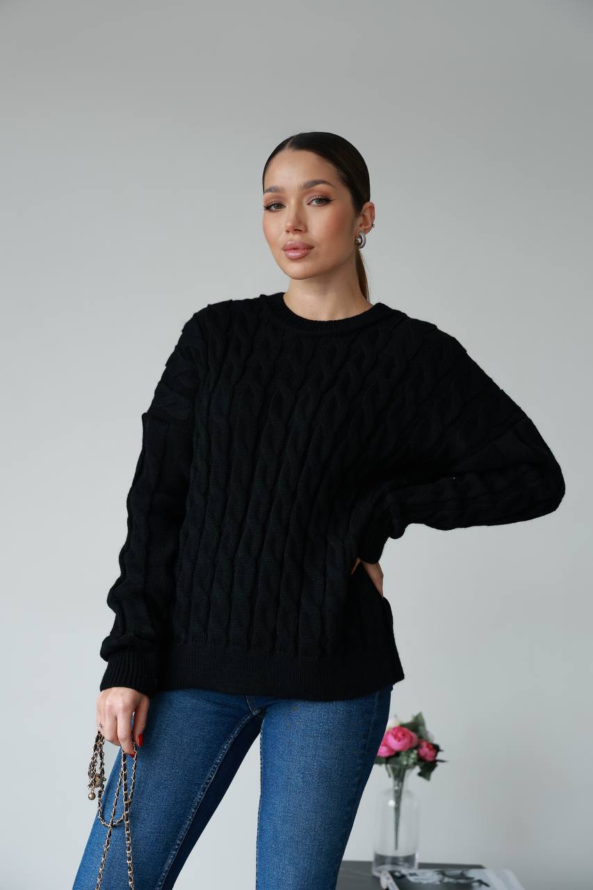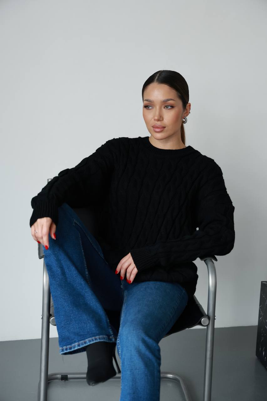 Жіночий в’язаний однотонний светр чорного кольору 00594