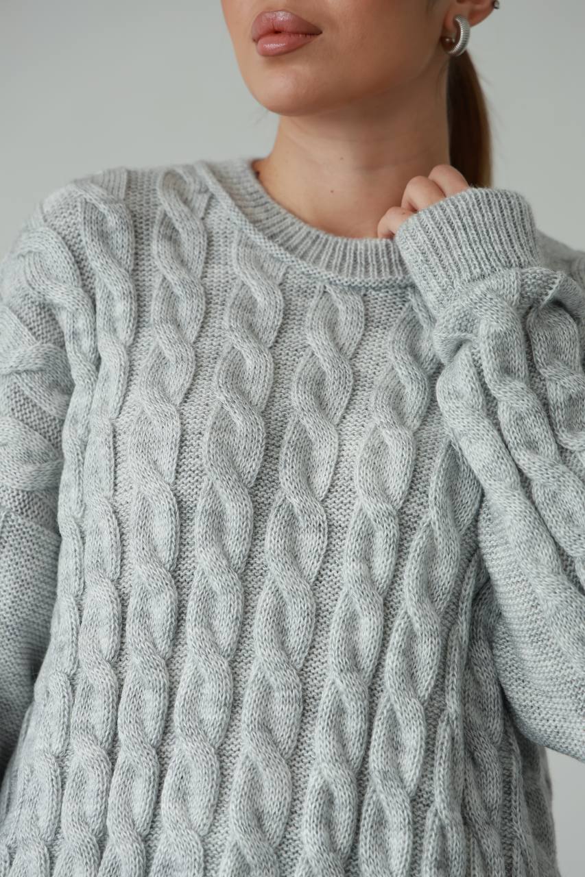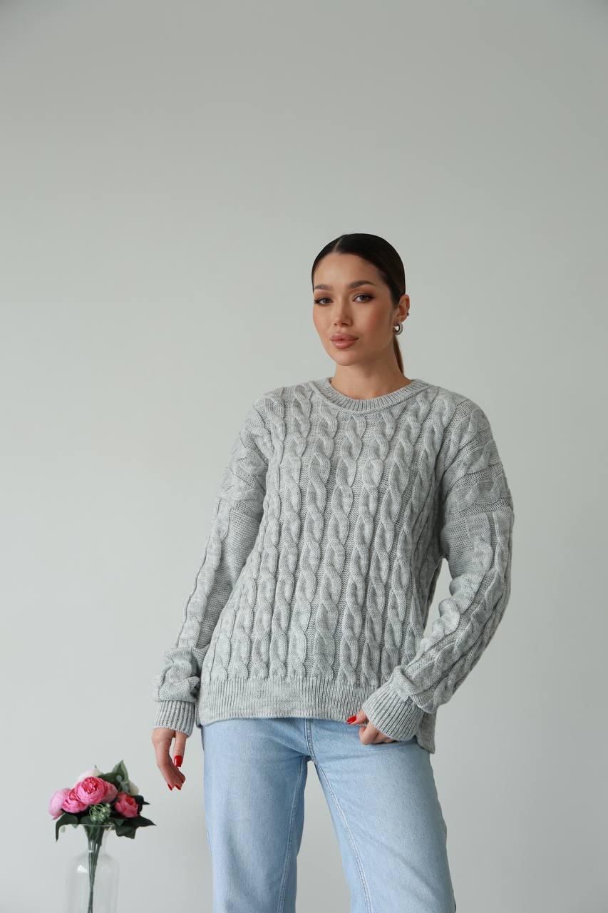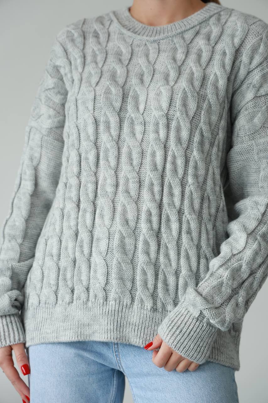 Жіночий в’язаний однотонний светр сірого кольору 00591