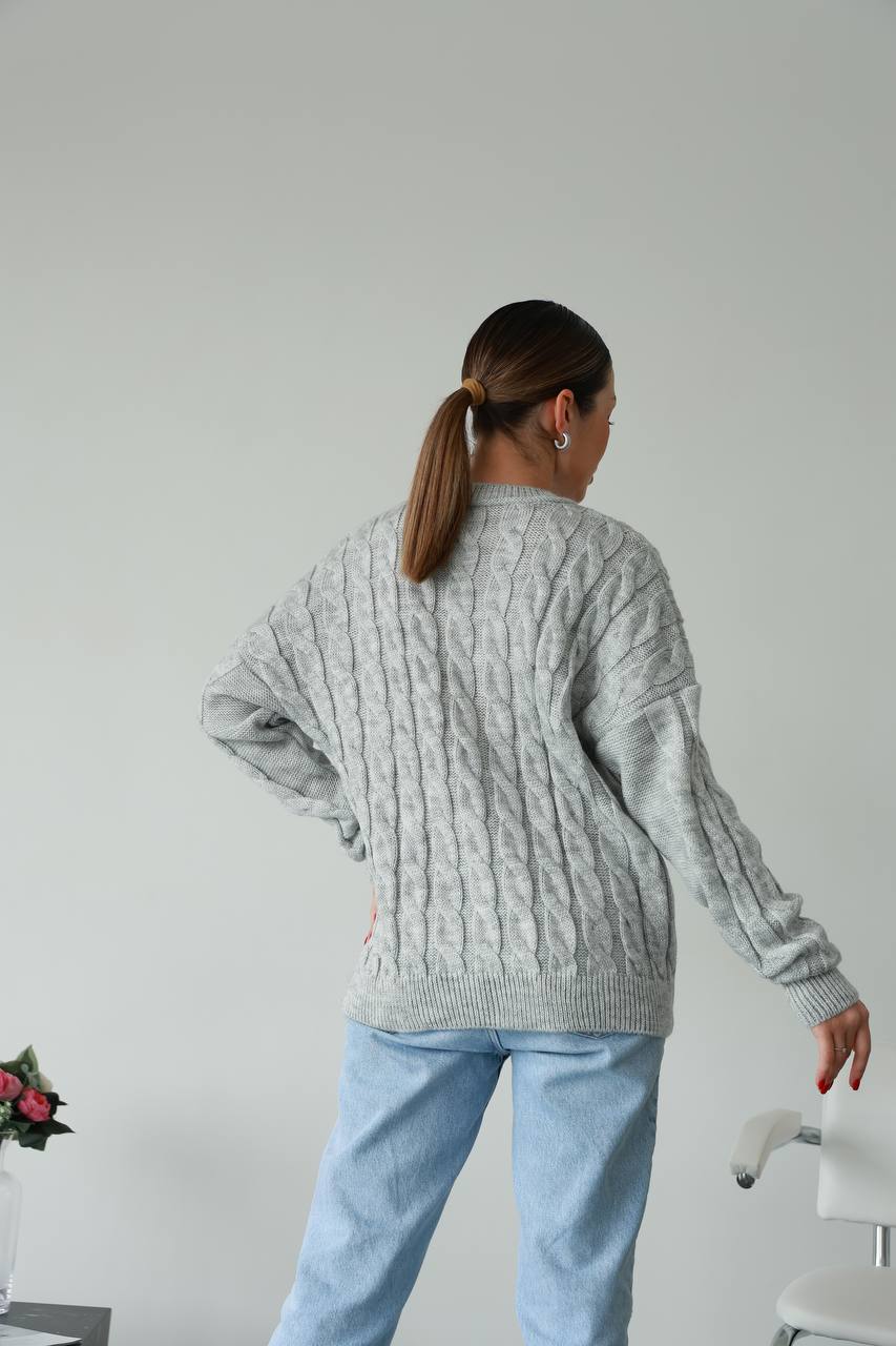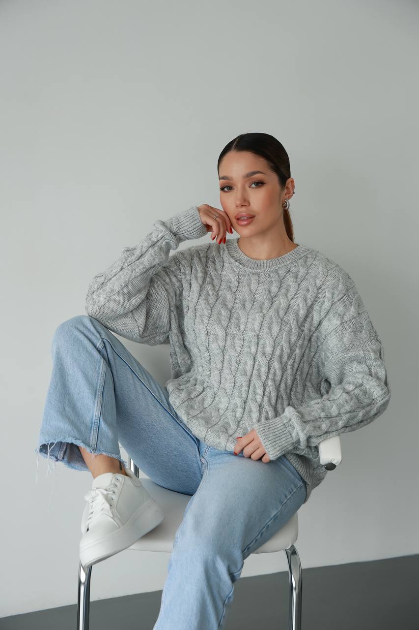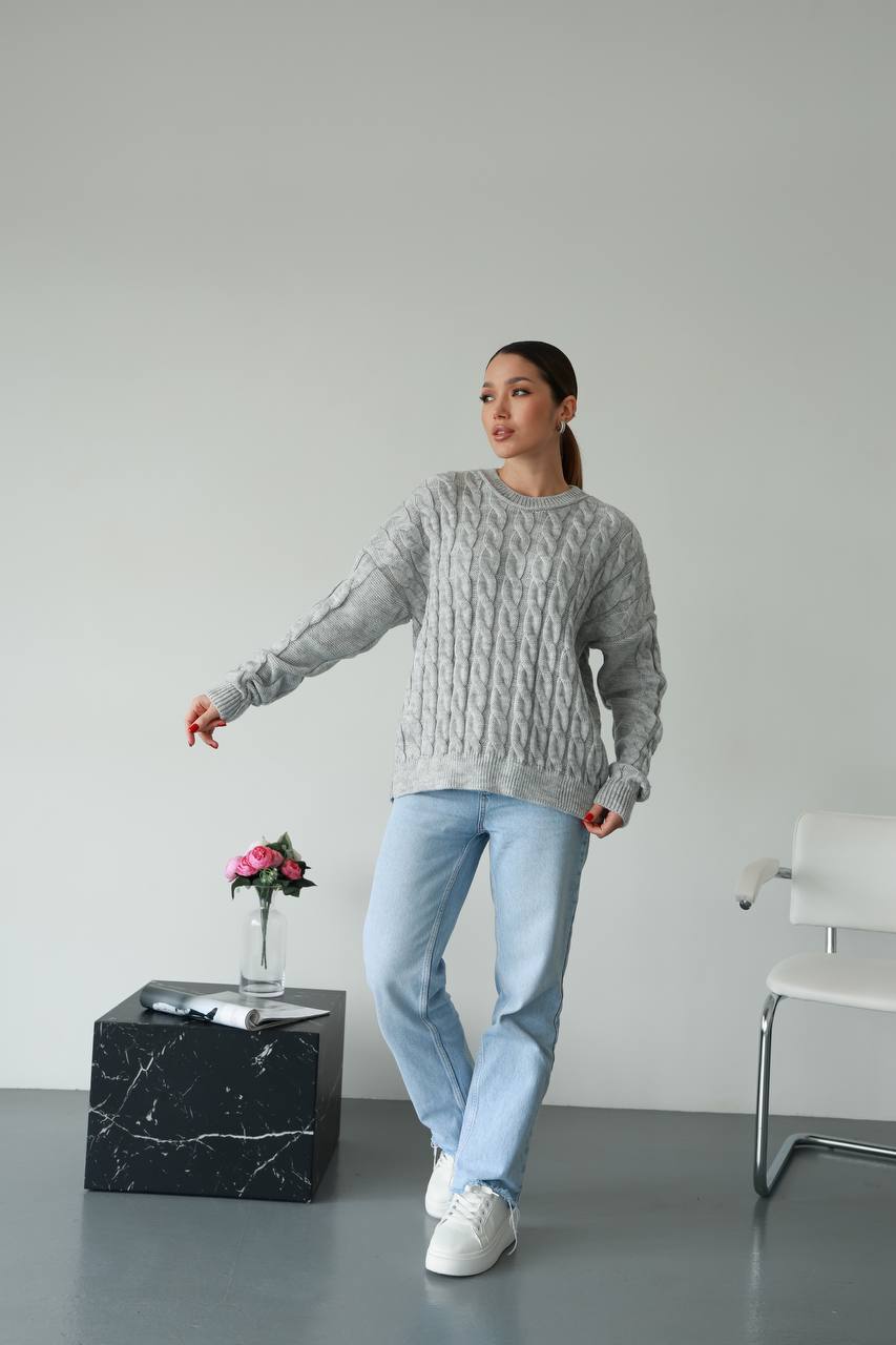 Жіночий в’язаний однотонний светр сірого кольору 00591
