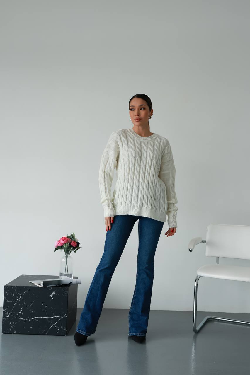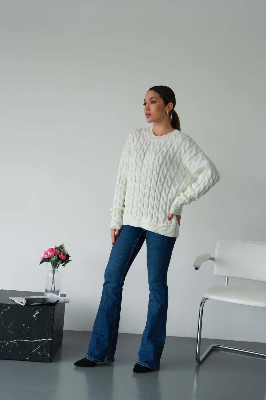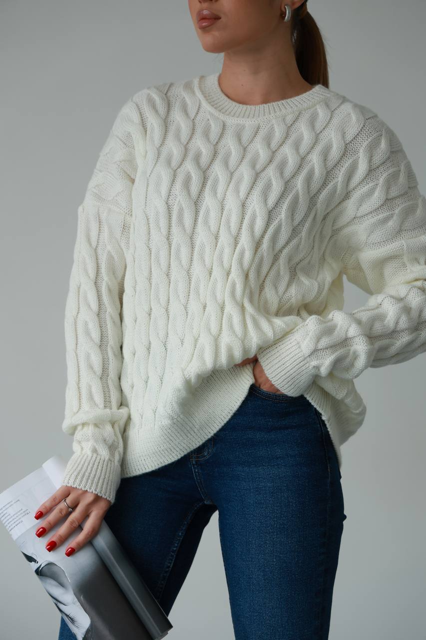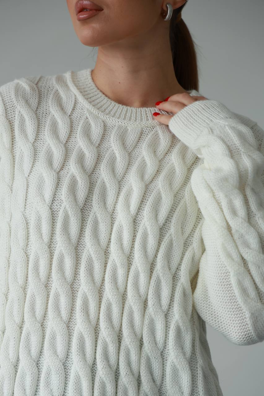 Жіночий в’язаний однотонний светр молочного кольору 00596