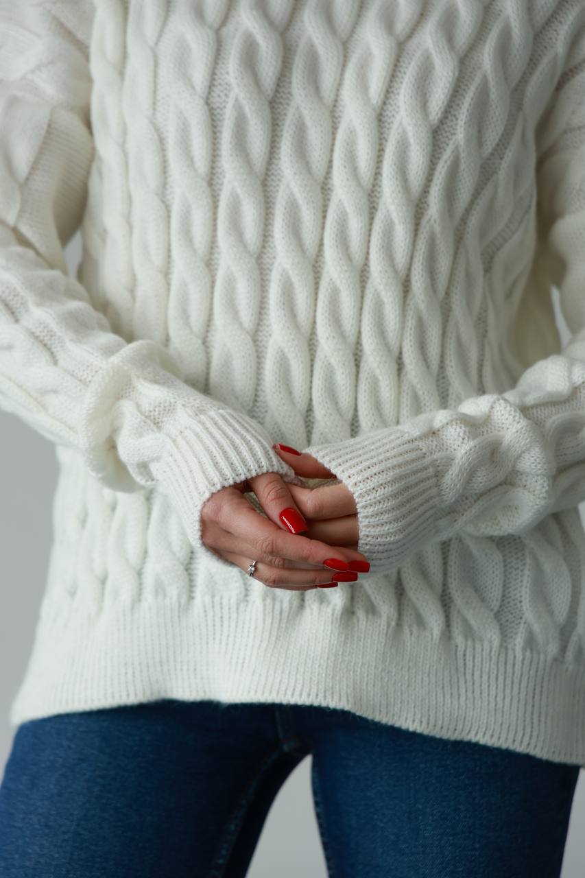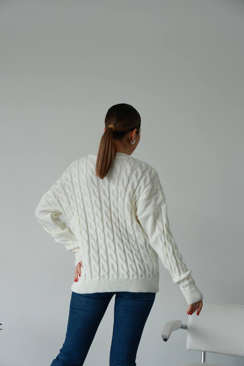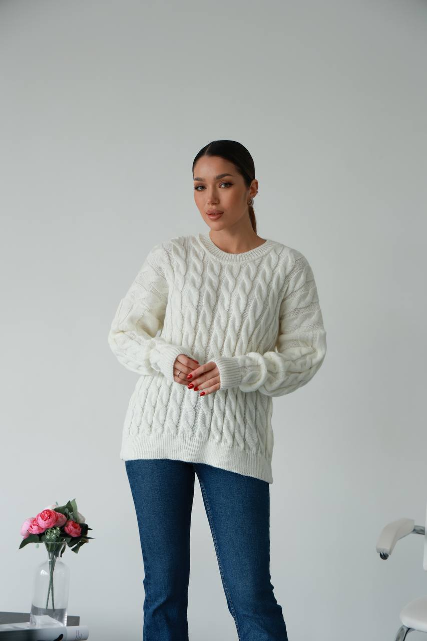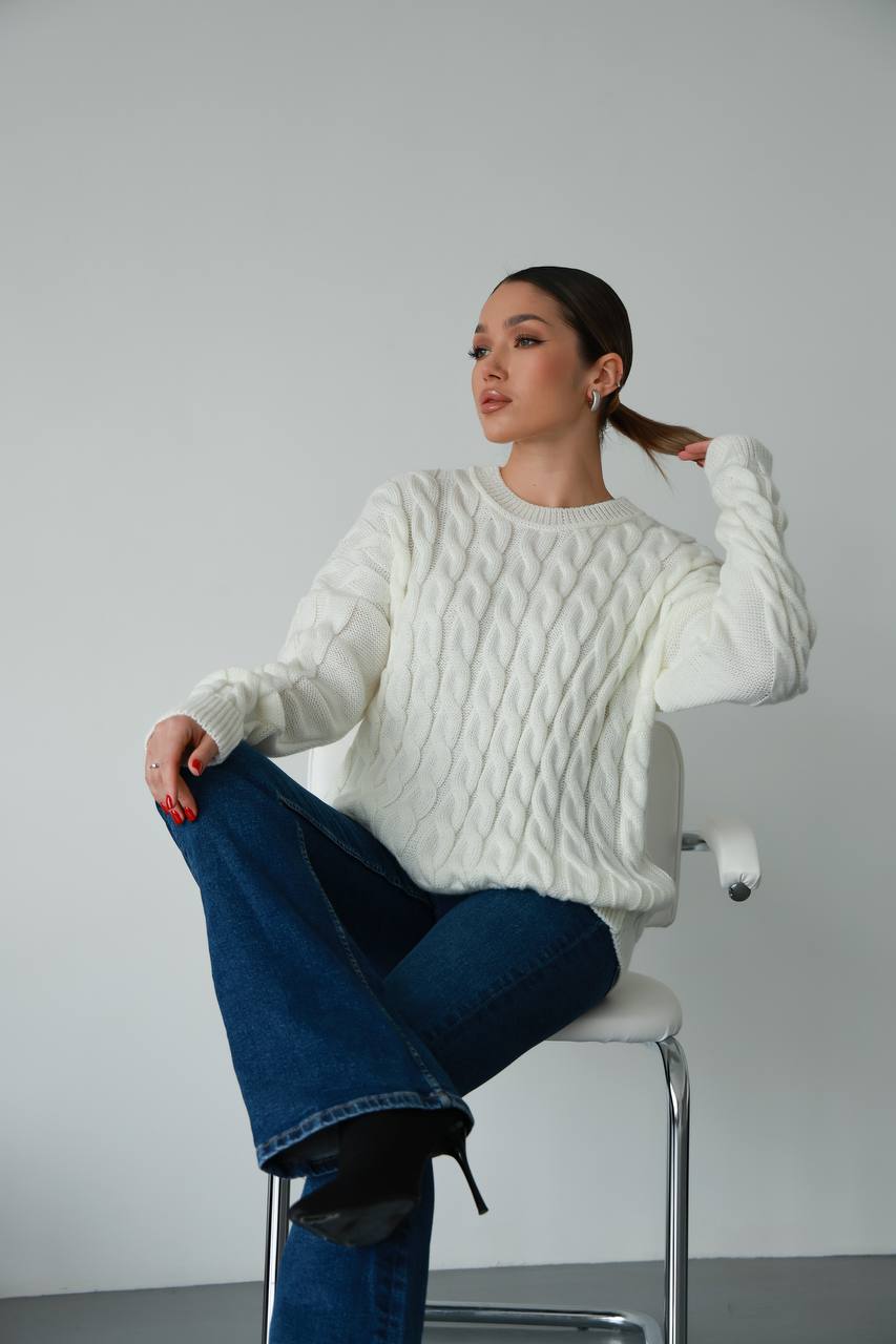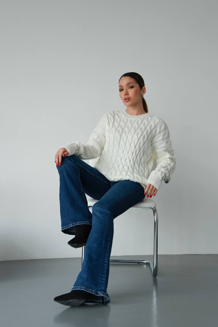 Жіночий в’язаний однотонний светр молочного кольору 00596