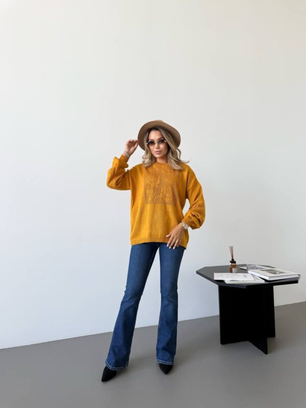 Додати до відстеження цінЖіночий в’язаний светр з ажурним візерунком гірчичного кольору — стильна та комфортна модель для повсякденного гардероба. Ніжність, комфорт і вишуканий візерунок — все, що потрібно для гардеробу. М’яка напіввовняна пряжа приємна до тіла, добре зберігає тепло та забезпечує комфорт у прохолодну погоду. Завдяки універсальному крою светр красиво сідає на різні типи фігури та не сковує рухів.