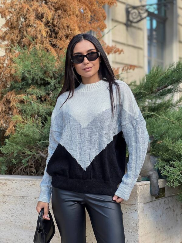 Жіночий в’язаний светр з низьким горлом молоко-сірий-чорний модель 5043 — ідеальний вибір для прохолодної осені та зими. Завдяки поєднанню акрилу та натуральної шерсті він одночасно теплий, м’який та зручний у щоденному носінні. Лаконічний фасон, універсальний розмір і стильні кольорові поєднання дозволяють легко створювати як повсякденні, так і більш елегантні образи.
