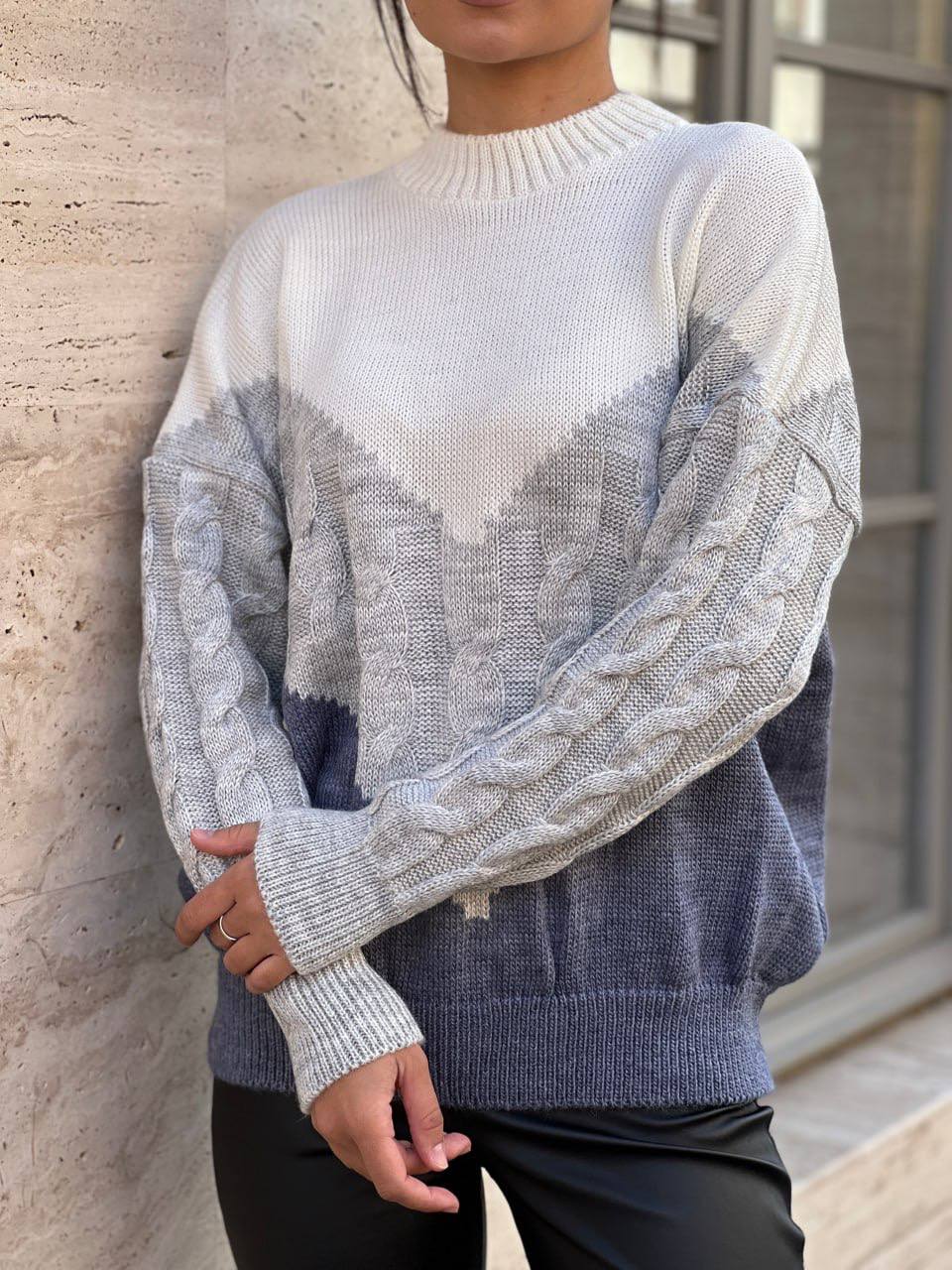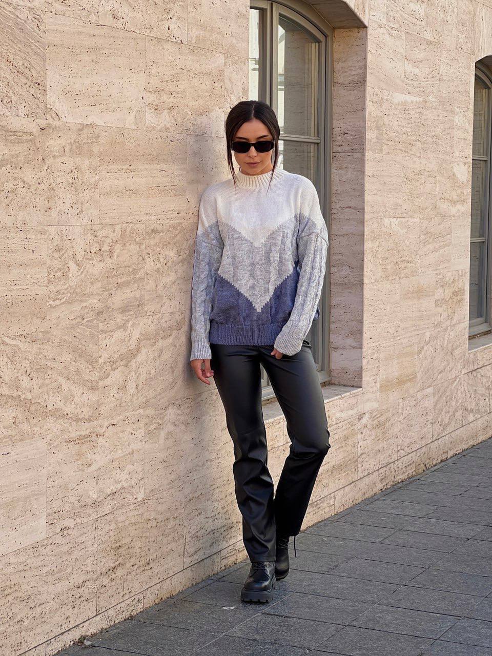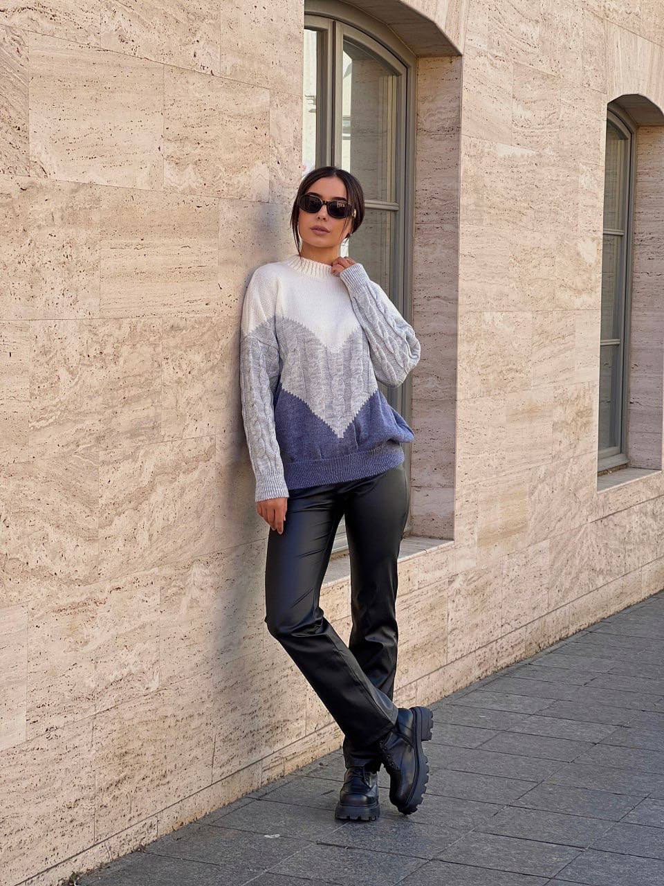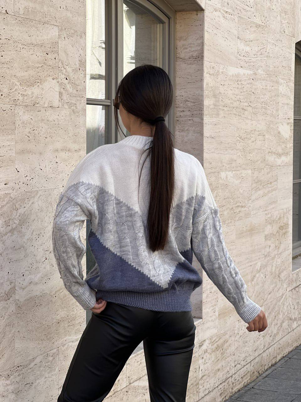 Жіночий в’язаний светр з низьким горлом молоко-сірий-джинс модель 5043 — ідеальний вибір для прохолодної осені та зими. Завдяки поєднанню акрилу та натуральної шерсті він одночасно теплий, м’який та зручний у щоденному носінні. Лаконічний фасон, універсальний розмір і стильні кольорові поєднання дозволяють легко створювати як повсякденні, так і більш елегантні образи.